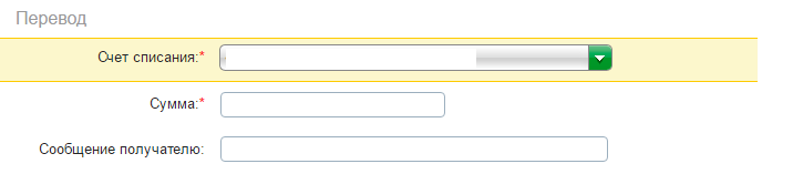 5. Заполните, счет списания (ваш счет карты или иной счет), Сумму и Сообщение получателю, где можно написать номер Вашего заказа: