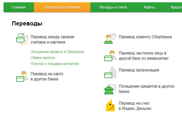 2. Выберите раздел «Переводы и платежи», «Перевод клиенту Сбе​р​б​а​нка»