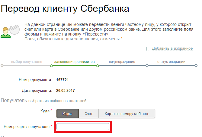 4. Проверьте, что Номер карты получателя Вы ввели правильно