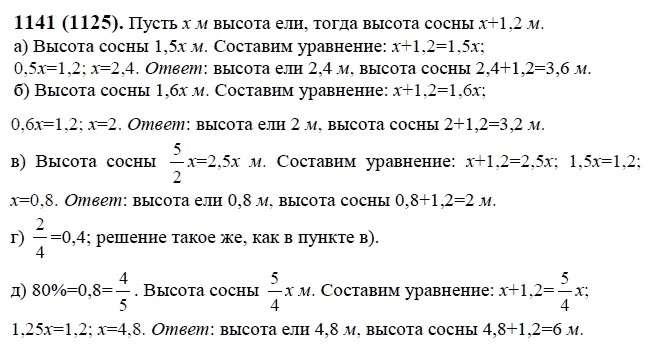 Решения домашних заданий по математике 6 класс Виленкин, Жохов, Чесноков, Шварцбурд 1141(1125) упражнение