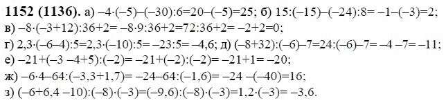 Решения домашних заданий по математике 6 класс Виленкин, Жохов, Чесноков, Шварцбурд 1152(1136) упражнение