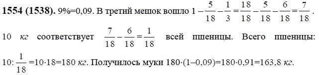 Решения домашних заданий по математике 6 класс Виленкин, Жохов, Чесноков, Шварцбурд 1554(1538) упражнение