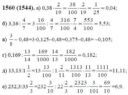 Решения домашних заданий по математике 6 класс Виленкин, Жохов, Чесноков, Шварцбурд 1560(1544) упражнение
