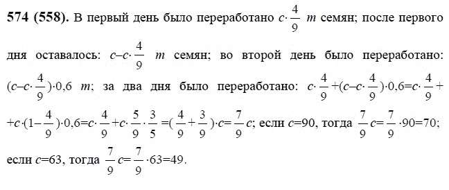 Решения домашних заданий по математике 6 класс Виленкин, Жохов, Чесноков, Шварцбурд 574(558) упражнение