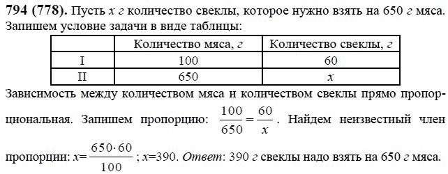 Решения домашних заданий по математике 6 класс Виленкин, Жохов, Чесноков, Шварцбурд 794(778) упражнение