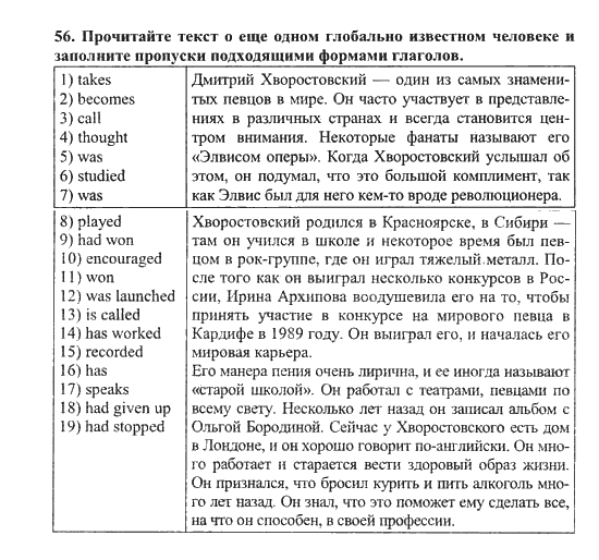Решения домашних заданий по английскому языку 11 класс Биболетова М. З. 56 упражнение Student's Book