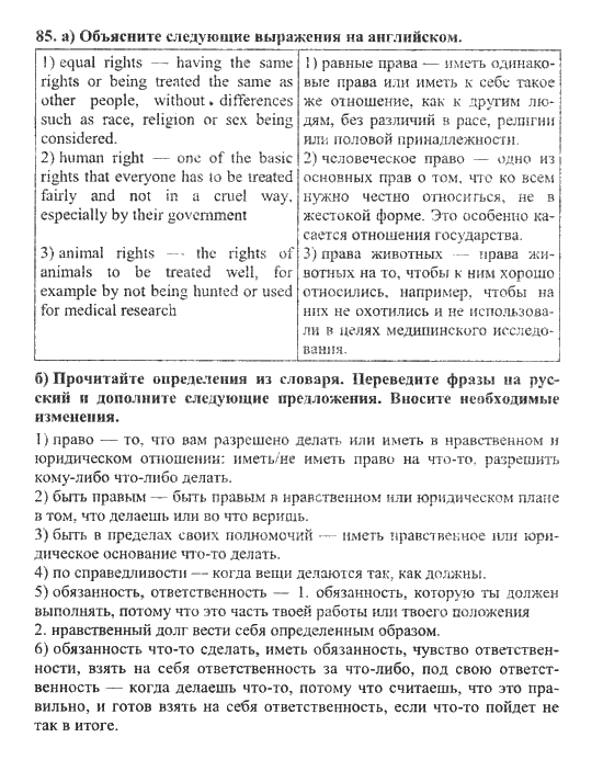 Решения домашних заданий по английскому языку 11 класс Биболетова М. З. 85 упражнение Student's Book