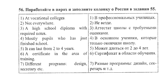 Решения домашних заданий по английскому языку 11 класс Биболетова М. З. 56 упражнение Student's Book