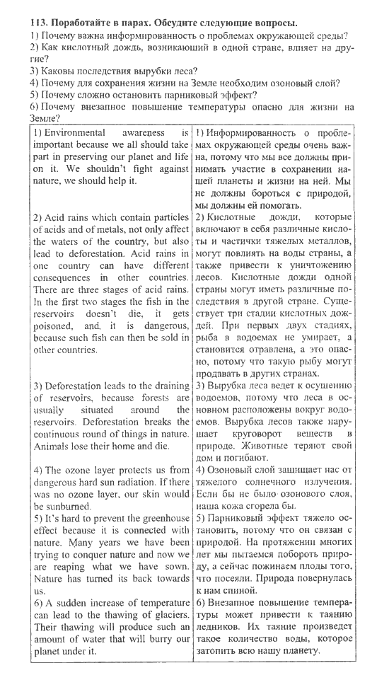 Решения домашних заданий по английскому языку 11 класс Биболетова М. З. 113 упражнение Student's Book