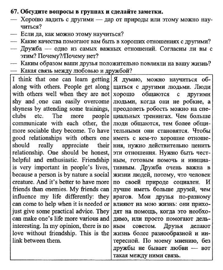Решения домашних заданий по английскому языку 11 класс Биболетова М. З. 67 упражнение Student's Book
