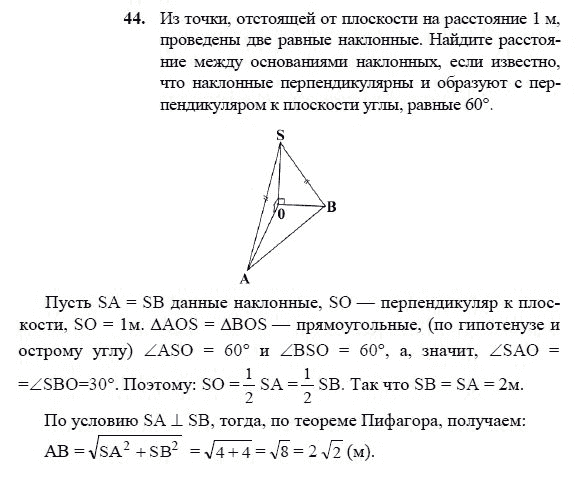 Решения домашних заданий по геометрии 10, 11 класс Погорелов А.В. 44 упражнение Базовый и профильный уровни