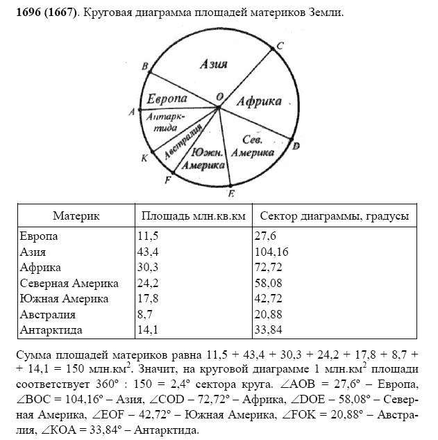 Решения домашних заданий по математике 5 класс Виленкин Н.Я., Жохов В.И., Чесноков А.С., Шварцбурд С.И. 1696(1667) упражнение