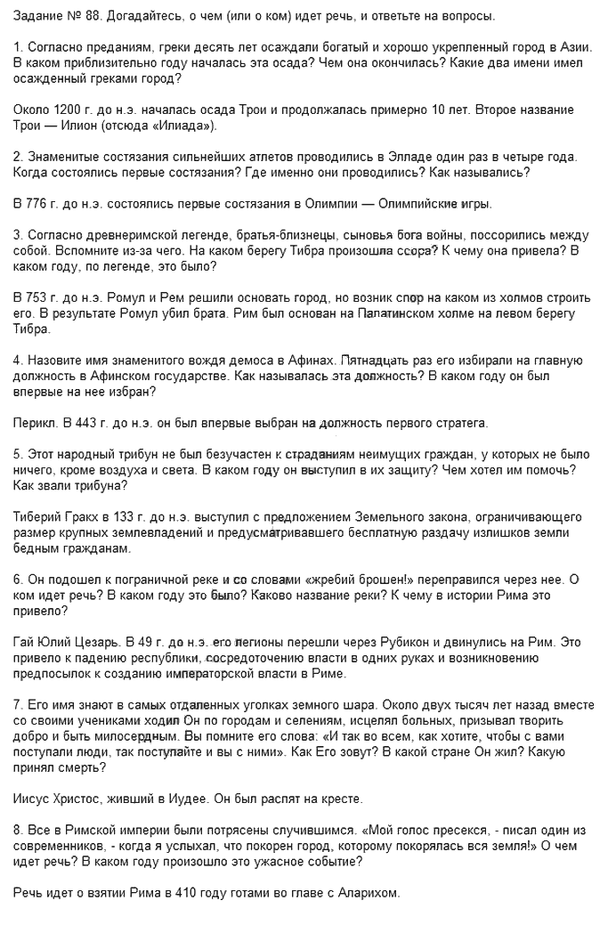 Решения домашних заданий по истории 5 класс Годер Г. И. 88 упражнение Часть 2 (рабочая тетрадь)