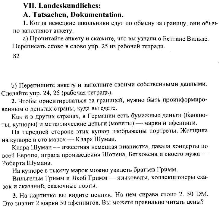 Решения домашних заданий по немецкому языку 8 класс Бим И.Л., Санникова Л.М. 7^1 упражнение