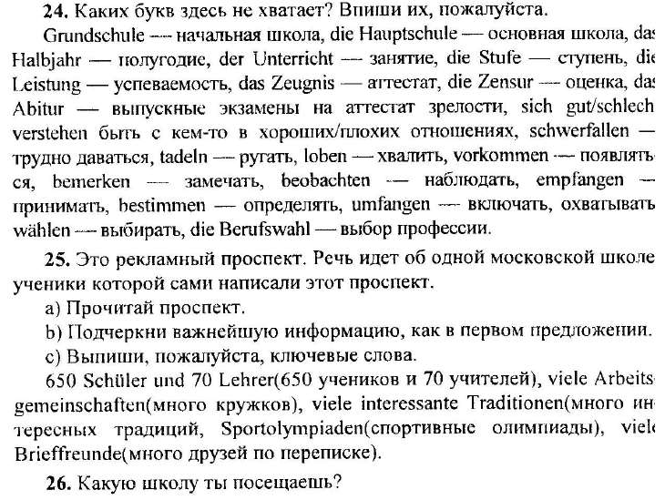 Решения домашних заданий по немецкому языку 8 класс Бим И.Л., Санникова Л.М. 24-26 упражнение
