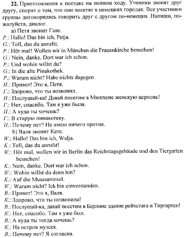 Решения домашних заданий по немецкому языку 8 класс Бим И.Л., Санникова Л.М. 22 упражнение