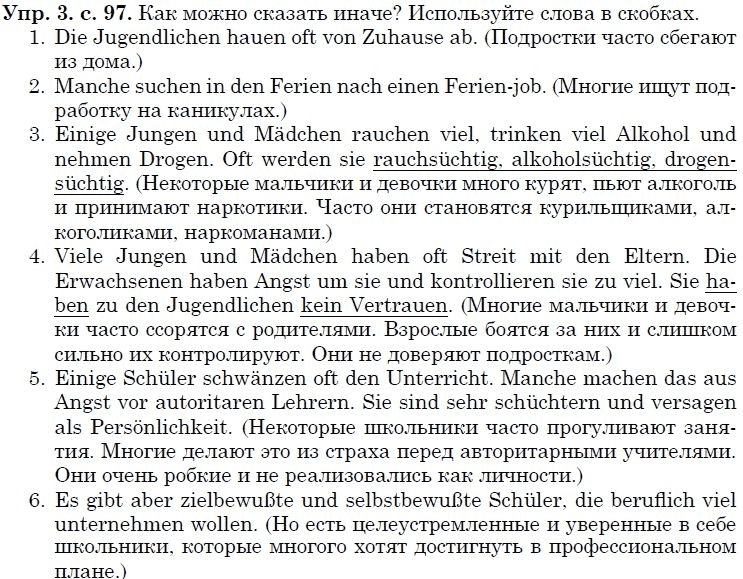 Решения домашних заданий по немецкому языку 9 класс Бим И.Л., Садомова Л.В. 3 упражнение