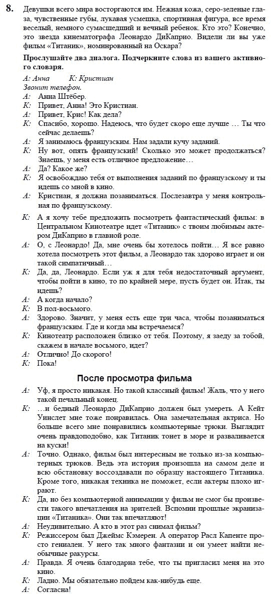Решения домашних заданий по немецкому языку 10, 11 класс Воронина Г.И., Карелина И.В. 8 упражнение Контакты
