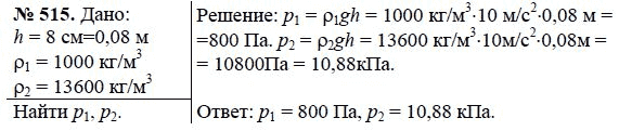 Решения домашних заданий по физике 7, 8, 9 класс Лукашик В.И., Иванова Е.В. 515 упражнение Сборник задач по физике