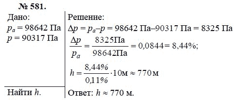 Решения домашних заданий по физике 7, 8, 9 класс Лукашик В.И., Иванова Е.В. 581 упражнение Сборник задач по физике
