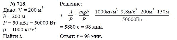 Решения домашних заданий по физике 7, 8, 9 класс Лукашик В.И., Иванова Е.В. 718 упражнение Сборник задач по физике