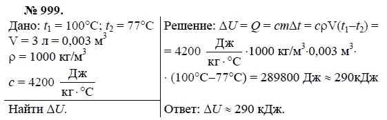 Решения домашних заданий по физике 7, 8, 9 класс Лукашик В.И., Иванова Е.В. 999 упражнение Сборник задач по физике