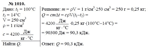 Решения домашних заданий по физике 7, 8, 9 класс Лукашик В.И., Иванова Е.В. 1010 упражнение Сборник задач по физике