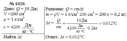 Решения домашних заданий по физике 7, 8, 9 класс Лукашик В.И., Иванова Е.В. 1020 упражнение Сборник задач по физике