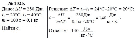Решения домашних заданий по физике 7, 8, 9 класс Лукашик В.И., Иванова Е.В. 1025 упражнение Сборник задач по физике