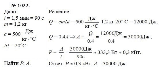 Решения домашних заданий по физике 7, 8, 9 класс Лукашик В.И., Иванова Е.В. 1032 упражнение Сборник задач по физике