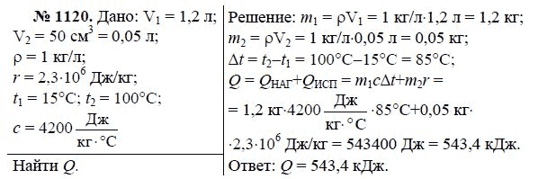 Решения домашних заданий по физике 7, 8, 9 класс Лукашик В.И., Иванова Е.В. 1120 упражнение Сборник задач по физике