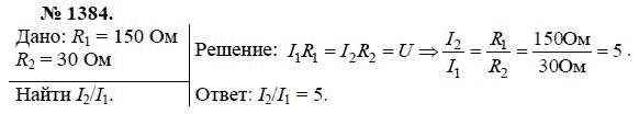 Решения домашних заданий по физике 7, 8, 9 класс Лукашик В.И., Иванова Е.В. 1384 упражнение Сборник задач по физике