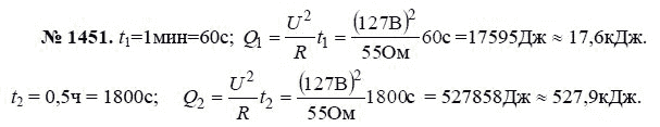 Решения домашних заданий по физике 7, 8, 9 класс Лукашик В.И., Иванова Е.В. 1451 упражнение Сборник задач по физике