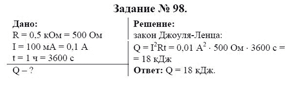 Решения домашних заданий по физике 9 класс Громов С.В., Родина Н.А. 98 упражнение