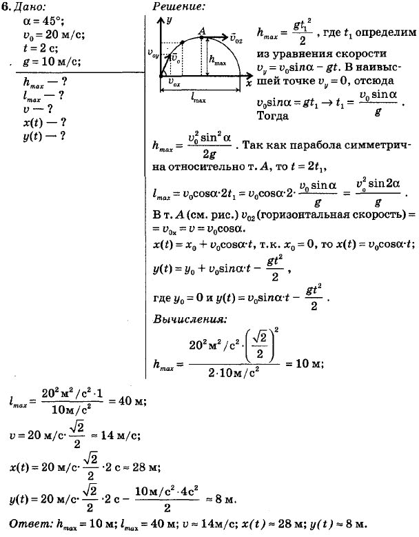 Решения домашних заданий по физике 10 класс Мякишев Г.Я. 6 упражнение Задачник