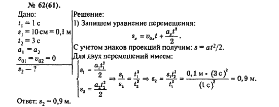 Решения домашних заданий по физике 10, 11 класс Рымкевич А.П. 62(61) упражнение Задачник