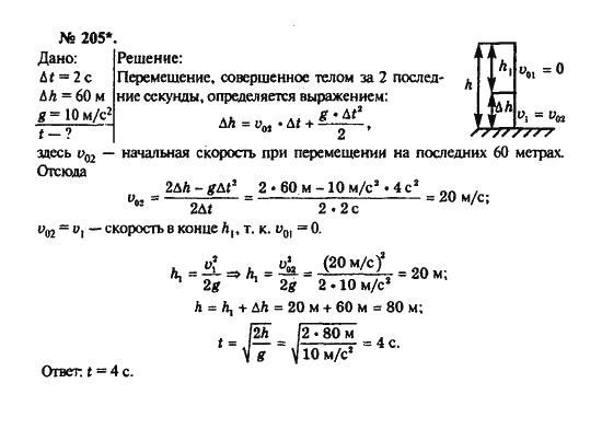 Решения домашних заданий по физике 10, 11 класс Рымкевич А.П. 205 упражнение Задачник