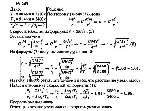 Решения домашних заданий по физике 10, 11 класс Рымкевич А.П. 243 упражнение Задачник
