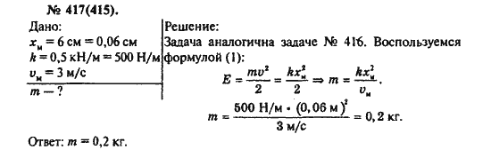 Решения домашних заданий по физике 10, 11 класс Рымкевич А.П. 417(415) упражнение Задачник