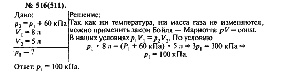 Решения домашних заданий по физике 10, 11 класс Рымкевич А.П. 516(511) упражнение Задачник