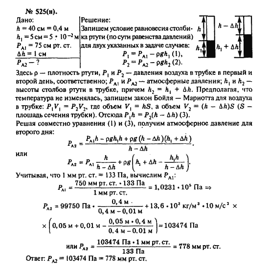 Решения домашних заданий по физике 10, 11 класс Рымкевич А.П. 525(n) упражнение Задачник