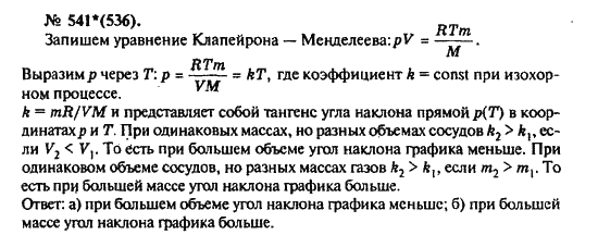 Решения домашних заданий по физике 10, 11 класс Рымкевич А.П. 541(536) упражнение Задачник