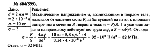 Решения домашних заданий по физике 10, 11 класс Рымкевич А.П. 604(599) упражнение Задачник
