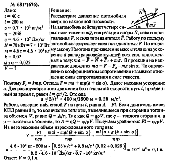 Решения домашних заданий по физике 10, 11 класс Рымкевич А.П. 681(676) упражнение Задачник