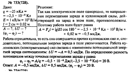 Решения домашних заданий по физике 10, 11 класс Рымкевич А.П. 733(728) упражнение Задачник