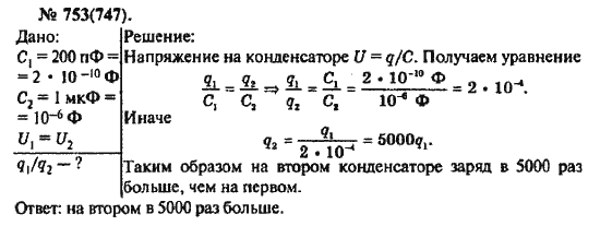 Решения домашних заданий по физике 10, 11 класс Рымкевич А.П. 753(747) упражнение Задачник