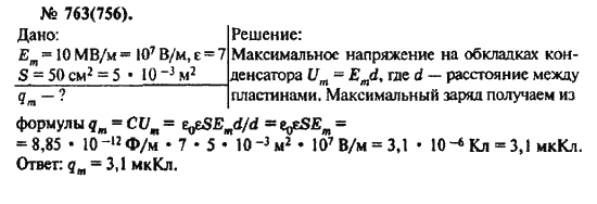 Решения домашних заданий по физике 10, 11 класс Рымкевич А.П. 763(756) упражнение Задачник