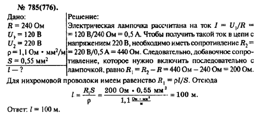 Решения домашних заданий по физике 10, 11 класс Рымкевич А.П. 785(776) упражнение Задачник