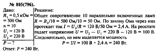 Решения домашних заданий по физике 10, 11 класс Рымкевич А.П. 805(796) упражнение Задачник