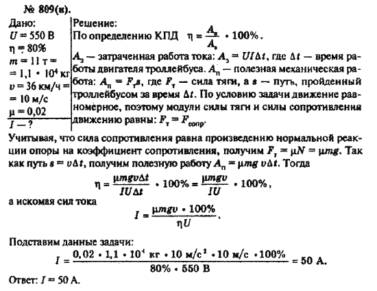 Решения домашних заданий по физике 10, 11 класс Рымкевич А.П. 809(n) упражнение Задачник